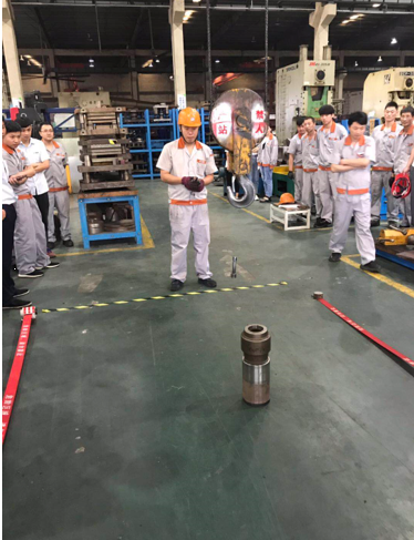 在比賽開(kāi)始之前,工會(huì)主席呂曦紅、生產(chǎn)總監(jiān)蔡云峰、研發(fā)中心工程師李軍輝都到現(xiàn)場(chǎng)進(jìn)行了相應(yīng)的賽前道具準(zhǔn)備、場(chǎng)地劃線(xiàn)。同時(shí)對(duì)比賽的安全操作、比賽流程做了詳細(xì)的講解,以確保員工安全比賽、了解賽事規(guī)則。本項(xiàng)目之所以叫“趣味行車(chē)”比賽,就是需要三人接力、按照用時(shí)最短的原則,將一個(gè)圓柱物體用行車(chē)吊裝進(jìn)空心的圓柱體內(nèi)。這對(duì)于平時(shí)操作行車(chē)的熟練程度、技藝都有較高的要求。