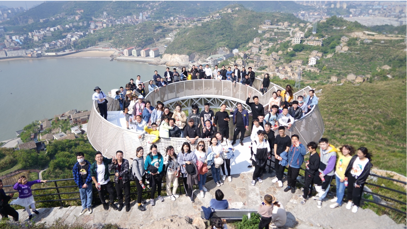 一個一個緊緊跟隨著,充滿著激情,一步一往上攀登,最終抵達綠道至高點:網紅觀景臺,并在這里留下勝利的笑影。海風陣陣,吹干了路程中留下的汗水。站在最高點上放眼望去,著實有“一覽眾山小”的感覺。這讓大家感觸到,只有奮勇攀登,堅持到底,才可一覽無限風光!