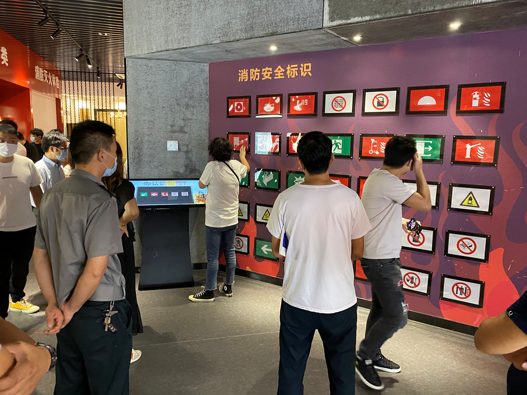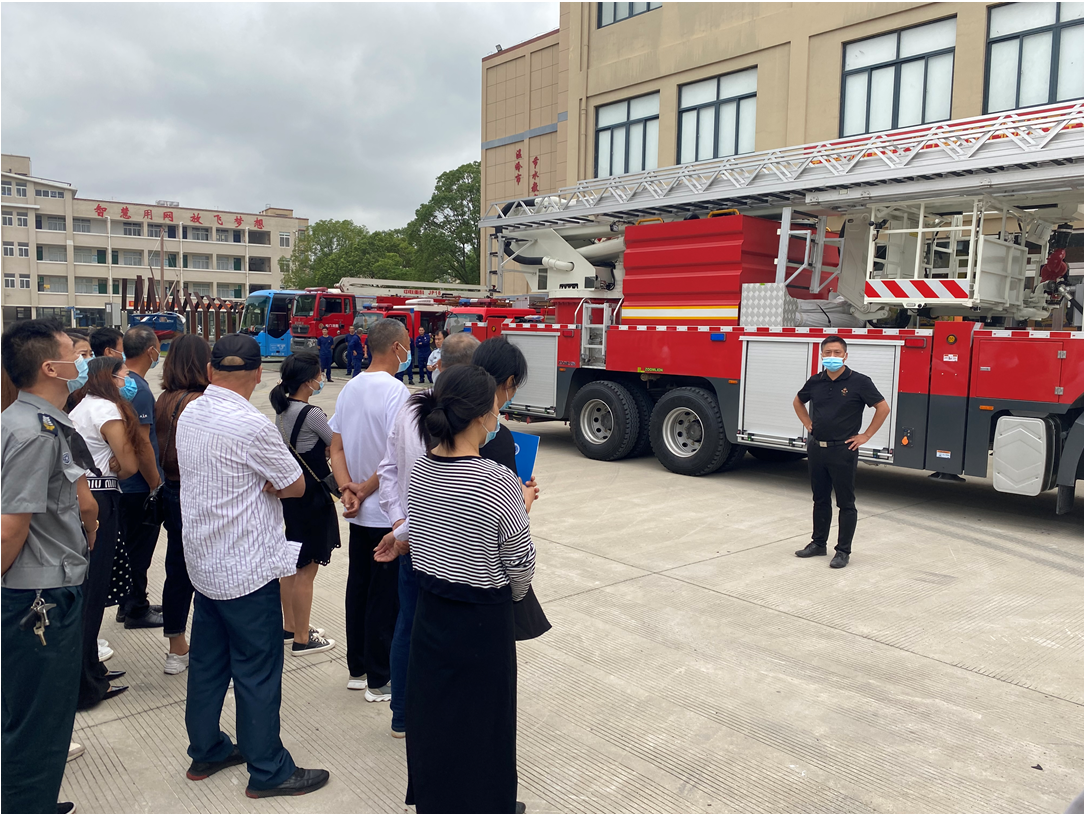 首先,由講解員帶領著各位參觀了基地現場,著重講解火災危害、應急措施及如何預防等安全消防知識,同時著重講解必須要知道四會、四個能力、五個第一基本概念。