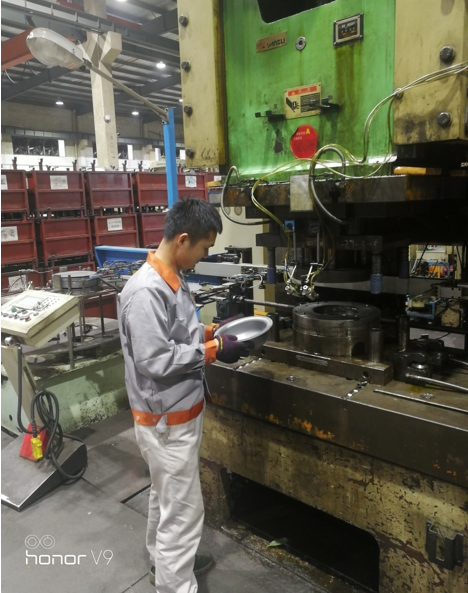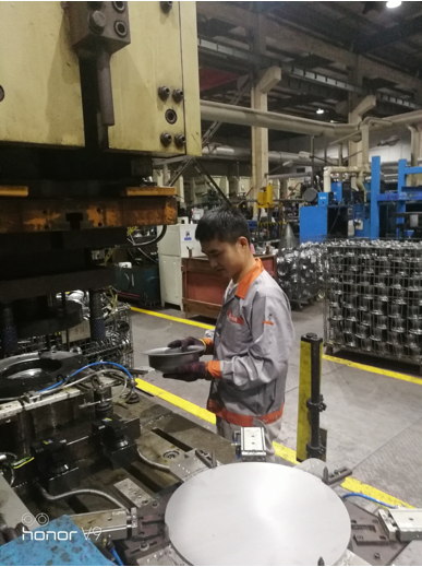 銳意創新,厲行節約,積極推動班組生產工作跨上新臺階。如六寸沖壓人工抬料改自動料吸裝置,提高生產效率  減少員工作業勞動強度。從原來未改進前一天生產5214片  到改進后一天生產5929片,效率提升8.7%  六寸滾圈由于對焊焊接好后流到滾圈工位因鋼圈較小生產速度快流下來滾圈來不及冷卻導致滾圈操作工取鋼圈時手燙傷氣泡。后經考慮滾圈至整形工序再不減少日產量同時提出使用機器人代替人工操作,給公司節約人工成本一年4—5萬元左右。