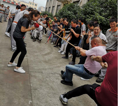 第一個項目比賽是拔河比賽,實行三局兩勝制,參賽隊員共十隊,由各個部門/車間組成。參賽人員不管是來自于辦公室還是各個車間,大家都早已做好了充分準備,奮力拼搏一下,此時大家都紛紛卷起袖子,咬緊牙關,為團隊出盡力氣,每輪兩次比賽,交換位置,圍觀的人員在一旁大聲吶喊助威,場面很是壯觀和震感。辦公室人員雖不像車間員工每天在車間干力氣活,但在賽場上的氣勢絲毫不輸車間人員,最后通過各組角逐,研發中心在拔河比賽項目中“衛冕奪冠”。
